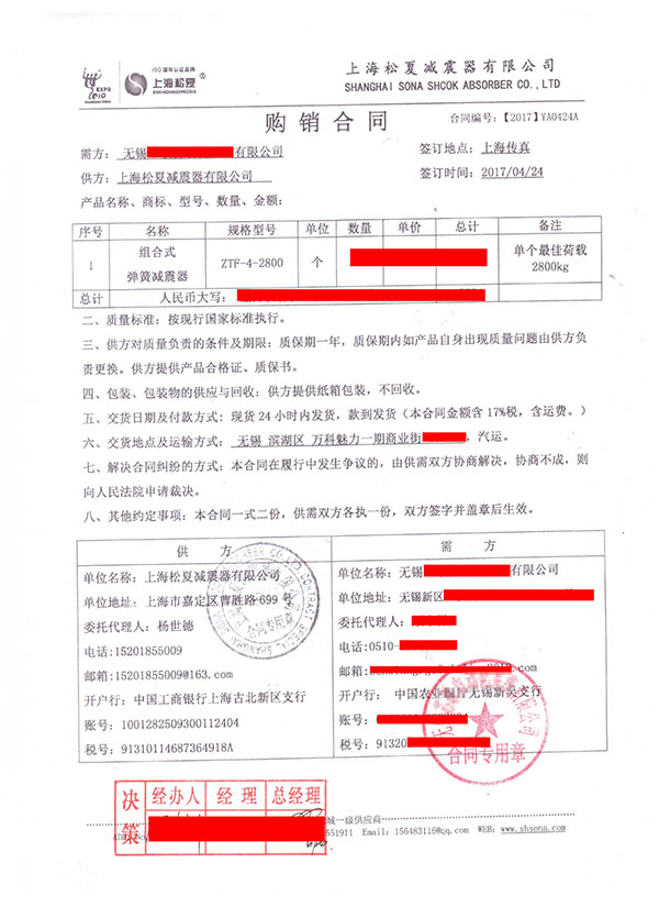 上海松夏減震器有限公司官方網(wǎng)站為您介紹:【無(wú)錫萬(wàn)科魅力一期商業(yè)街項(xiàng)目】ZTF型彈簧減震器產(chǎn)品采購(gòu)合同信息,我們松夏公司2019年為茶旅小鎮(zhèn)(武夷山)會(huì)展中心-配套ZTF型彈簧減震器,起到了減震和降噪的作用,以下是【無(wú)錫萬(wàn)科魅力一期商業(yè)街項(xiàng)目】ZTF型彈簧減震器產(chǎn)品采購(gòu)合同介紹。