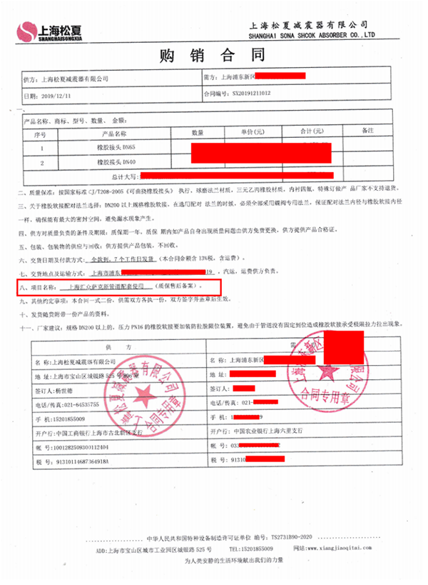 橡膠接頭項(xiàng)目銷售合同信息,我們松夏公司2019年為吉利動(dòng)力總成義烏工廠車削液車間配套