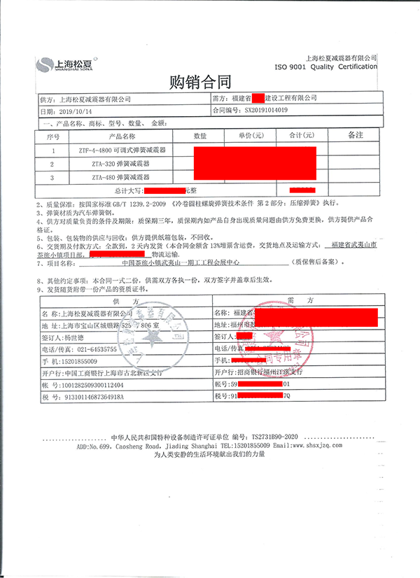 【中國茶旅小鎮(zhèn)(武夷山)會展中心】配套彈簧減震器合同