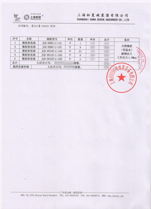 上海松夏減震器有限公司響水電廠DN2200耐高溫橡膠膨脹節(jié)合同案例: