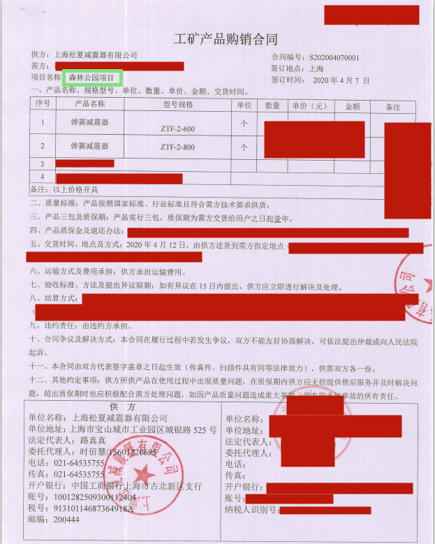 上海松夏減震器有限公司官方網(wǎng)站為您介紹:【福州森林公園項(xiàng)目】使用ZTF型彈簧減震器采購合同信息,我們松夏公司2020年為【福州森林公園項(xiàng)目】使用ZTF型彈簧減震器,起到了減震和降噪的作用,以下是【福州森林公園項(xiàng)目】使用ZTF型彈簧減震器采購合同介紹。